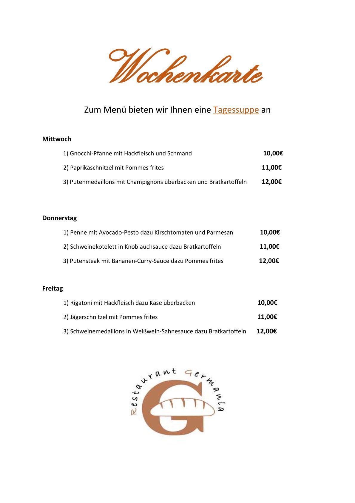 Wochenkarte 01.04-02.04 (Freitag nicht gültig)