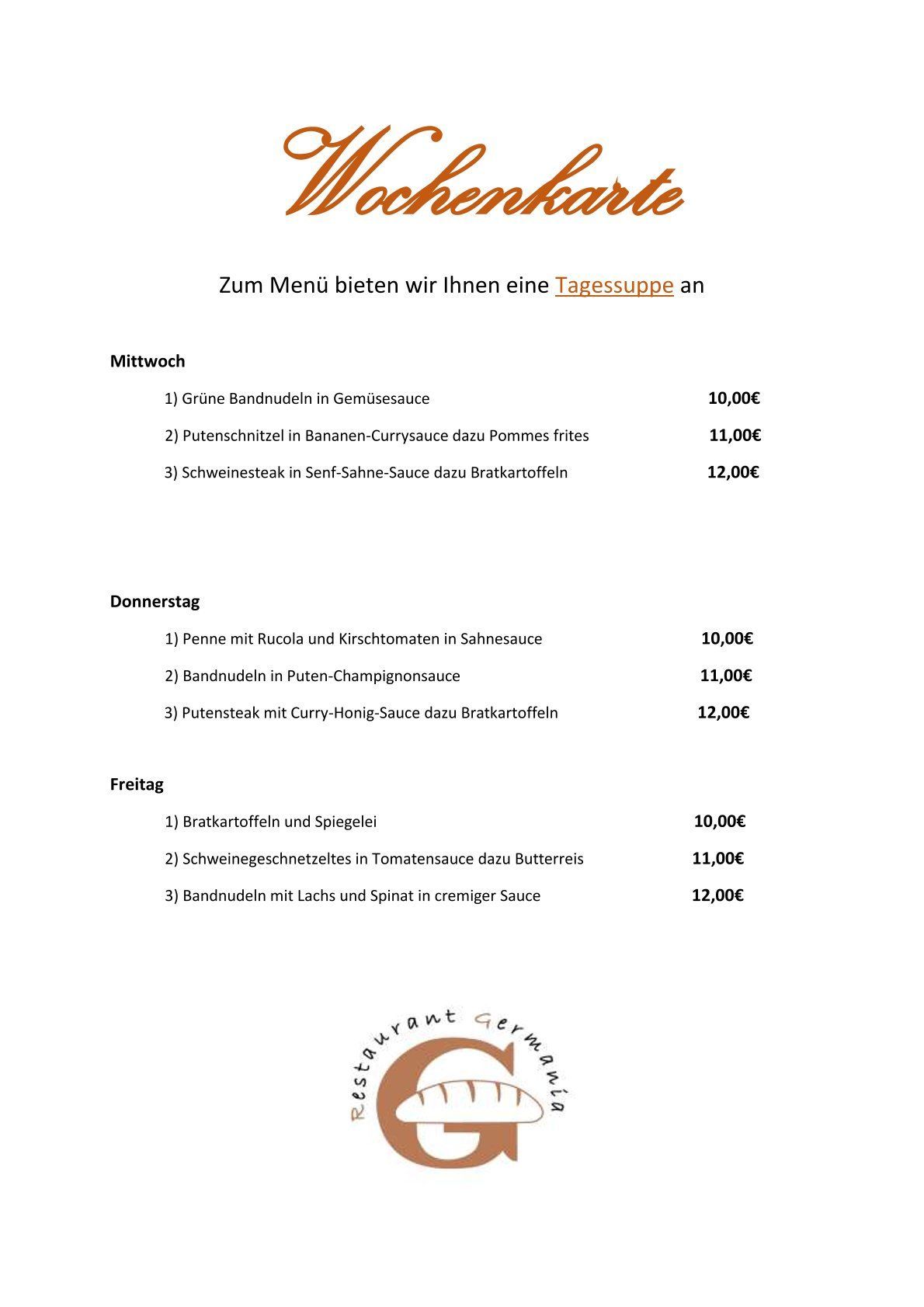 Mittwoch: 11:30-14:30 Uhr (warme Küche 14:00 Uhr)
